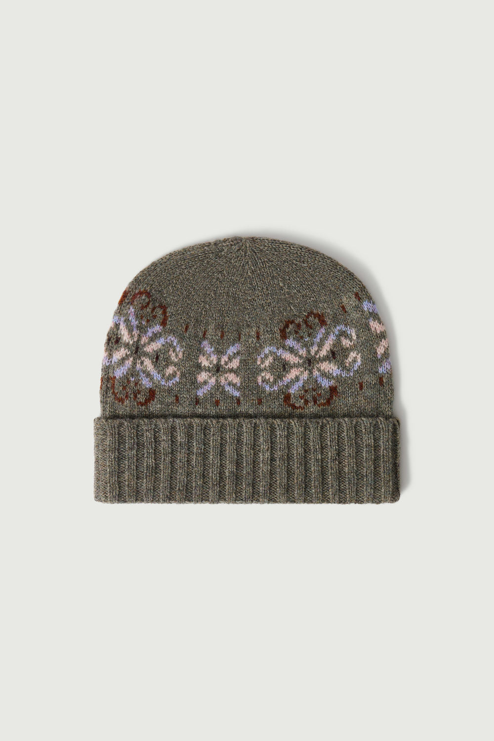 BERYL is a beanie crafted in an English-inspired jacquard pattern, distinguished by its elegant graphic design. Perfect for facing chilly days with a touch of chic.