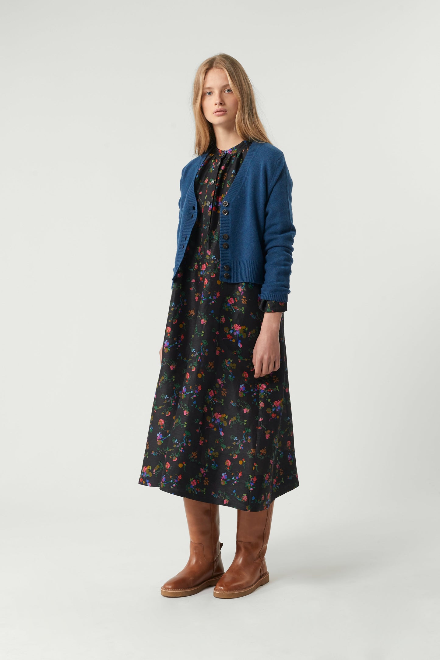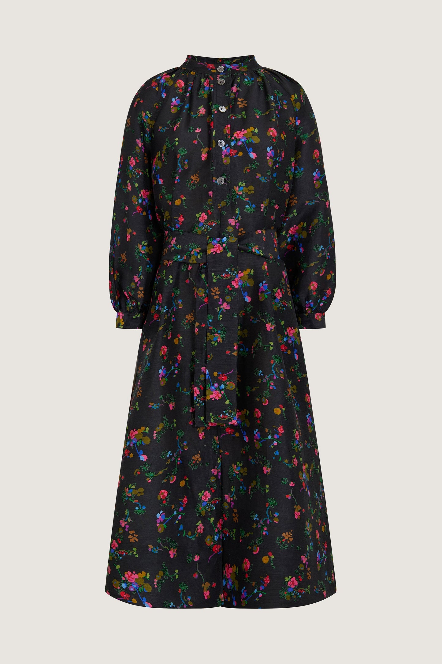 Silk and linen print dress multicoloured