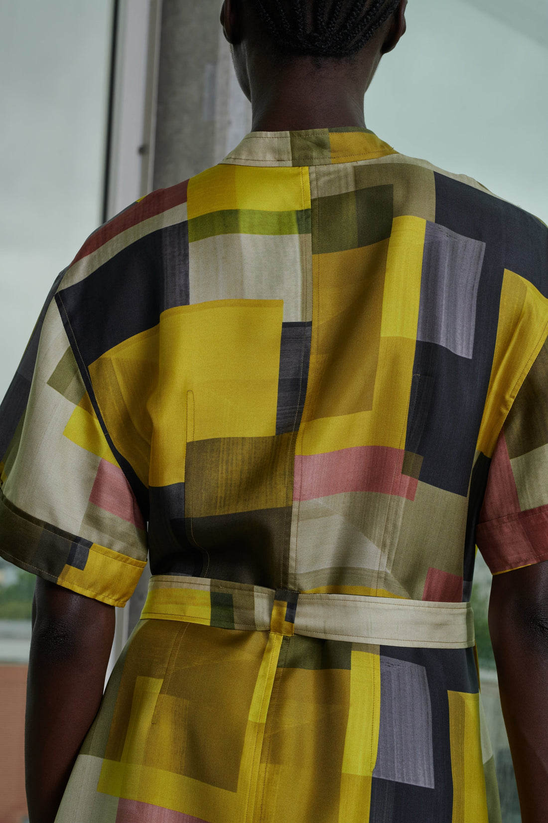 - Short, straight cut; belted at the waist