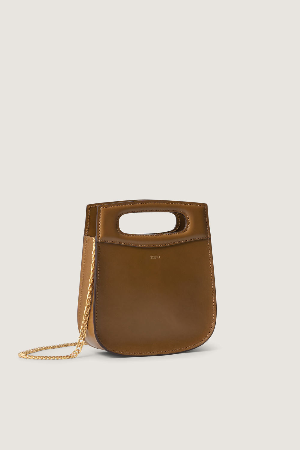 CHERI MINI is a scaled-down version of one of our iconic bags, recognizable by its distinctive oval handle. It can be carried by hand or worn across the body thanks to its slender golden chain. It's the perfect accent for a dressy outfit, while also being practical for everyday use when you only need to carry the essentials.